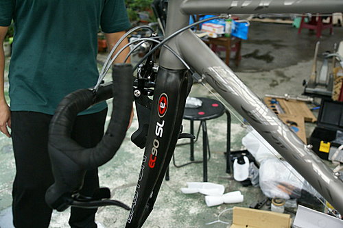 而當時幫忙的奇瑋謝老闆,也向鈦郁拿了一支鈦車架